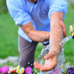 “O jullie die geloven, wanneer jullie het gebed willen verrichten, was dan jullie gezichten en jullie handen tot aan de ellebogen, en wrijf over jullie hoofden, en (was) jullie voeten tot aan de enkels.”